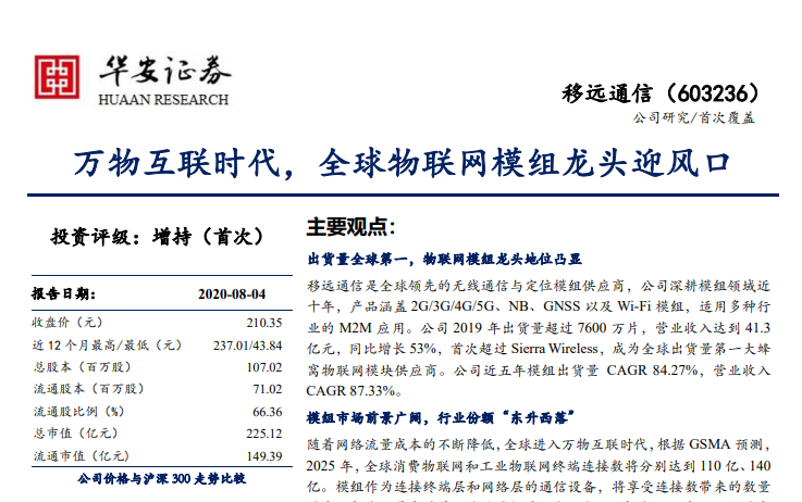移远通信-万物互联时代全球物联网模组龙头迎风口