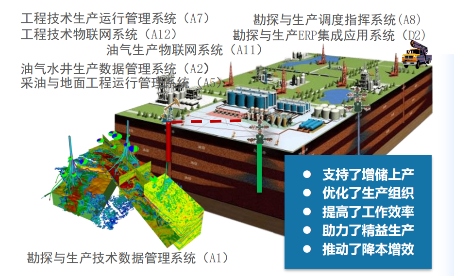 践行“共享中国石油”战略目标,“十二五”末提出以“两统一、一通用”为核心的勘探开 发梦想云蓝图,旨在实现上游全业务链数据互联、技术互通、业务协同与智能化发展,构建 共创、共建、共享、共赢的信息化新生态。