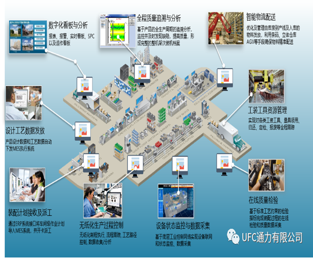 数字化工厂(DF)以产品全生命周期的相关数据为基础,在计算机虚拟环境中,对整个生产过程进行仿真、评估和优化,并进一步扩展到整个产品生命周期的新型生产组织方式。数字化工厂(DF)是现代数字制造技术与计算机仿真技术相结合的产物,同时具有其鲜明的特征。它的出现给基础制造业注入了新的活力,主要作为沟通产品设计和产品制造之间的桥梁。“数字化工厂”规划系统通过统一的数据平台,通过具体的规划设计和验证预见所有的制造任务,在进步质量的同时减少设计时间,加速产品开发周期,消除浪费,减少为了完成某项任务所需的资源数目等,实现主机厂内部、生产线供给商、工装夹具供给商等的并行工程。数字化工厂(DF)是企业数字化辅助工程新的发展阶段,包括产品开发数字化、生产准备数字化、制造数字化、管理数字化、营销数字化。除了要对产品开发过程进行建模与仿真外,还要根据产品的变化对生产系统的重组和运行进行仿真,使生产系统在投入运行前就了解系统的使用性能,分析其可靠性、经济性、质量、工期等,为生产过程优化和网络制造提供支持。
