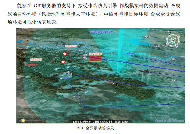 通过全要素战场环境合成、自然环境可视化输出、战情战况可视化、目标特性可视化、电磁环境及效应可视化、参数控件可视化等技术手段为现代战争全面、准确地战场态势信息。战场态势的三维显示,有利于作战人员认识、分析、理解战场信息,现已成为军事信息系统的重要组成部分,是作战回路的重要一环,对取得信息优势具有重大作用。