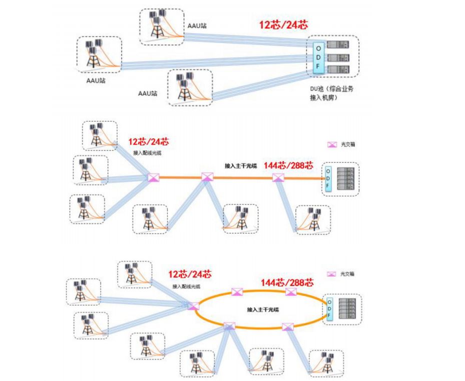 光缆网架构分为核心层、汇聚层和接入层,其中,接入层由主干光缆、配线光缆和引入光缆构成,方便快捷的边缘接入层有利于低成本、高带宽业务的快速接入和开通。为提高基础资源利用率,城域网将逐渐向一张网络同时承载多种业务的方向发展演进,以实现包括无线、固定宽带、专线、数据中心互联等在内的综合业务承载。