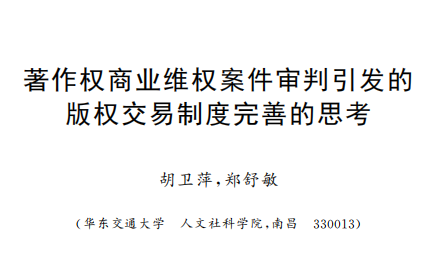 著作权商业维权案件审判引发的版权交易制度完善的思考_胡卫萍