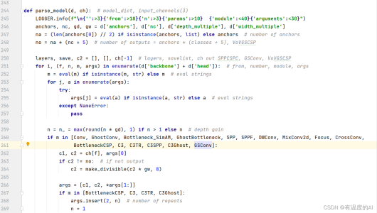 3、修改配置文件,将YOLOv5s.yaml的Neck模块中的Conv换成GSConv ,C3模块换为VoVGSCSP。将YOLOv5s.yaml的Neck模块中的Conv换成GSConv,C3模块换为VoVGSCSP。2、找到yolo.py文件里的parse_model函数,将类名加入进去,注意有两处需要添加的地方。3、修改配置文件,将YOLOv5s.yaml的Neck模块中的Conv换成GSConv。将YOLOv5s.yaml的Neck模块中的Conv换成GSConv。......