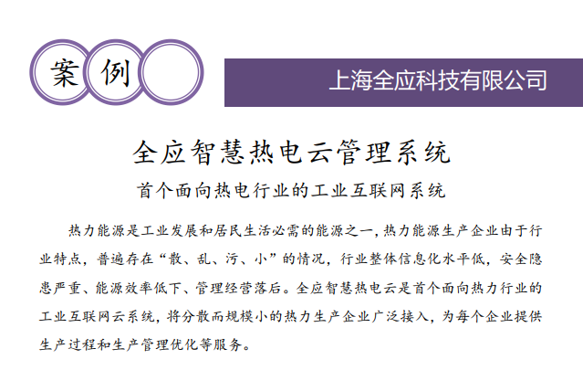 全应智慧热电云管理系统 首个面向热电行业的工业互联网系统