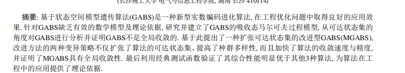 改进的状态空间模型遗传算法及其全局收敛性分析
