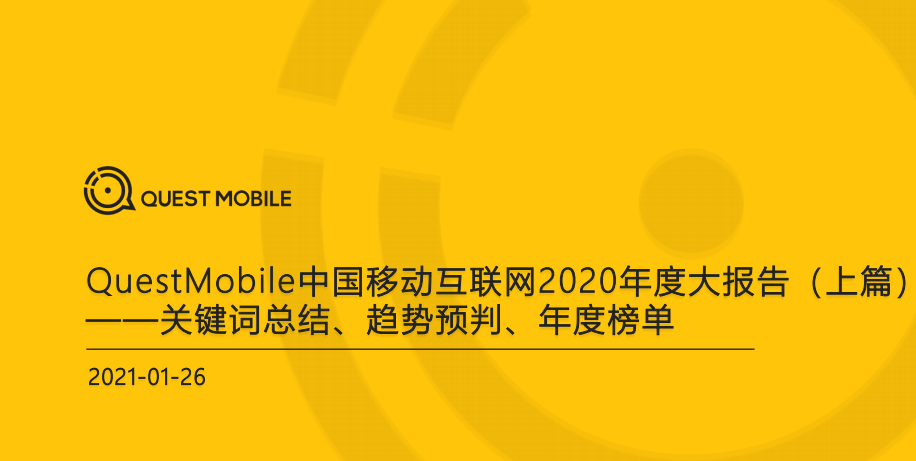 QuestMobile中国移动互联网2020年度大报告上篇87页