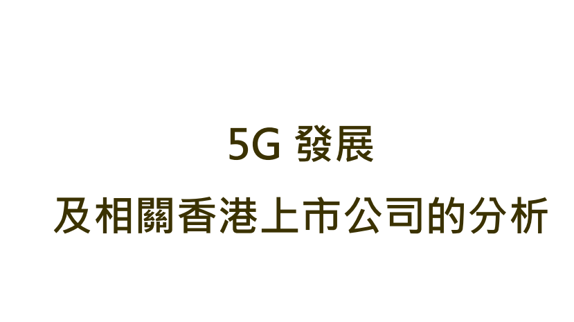 隨著全球追求更快、更優越、更多帶寬、更低時延、同時支援更多連接設備的通訊技術,5G 成 了現時各國兵家必爭之技藝。透過 5G 技術未來更有可能開闢包括物聯網、無人駕駛等具潛力的 新市場,蘊藏的經濟效益難以衡量。本報告將簡述 5G 的應用及相關技術,並探討未來國內 5G 發展進程,以及就在港上市的 5G 相關股份作出分析。