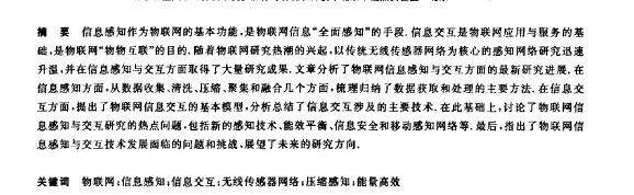息感知作为物联两的基本功能.是物联网信息“全面感知”的手段.信息交互是物联网应用与服务的基