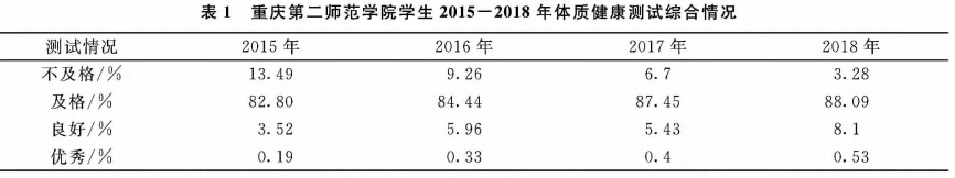 以大数据技术和人工智能技术为代表的“互联网+”新型生态为传统教育注入了新的活力,也为教育的发展 带来了新的契机.运用文献资料法、数理分析法等研究方法,以重庆第二师范学院2017级学生为调查对象,实施 基于“互联网+”的智能手环结合体育网络管理平台APP的大学体育课内外健康数据一体化教学实践研究,构建了 集数据收集、数据分析、数据应用为一体的实践模型并探析其实践成效.结果表明,该实践能够实现数据化管理体 育课程、促进学生体质健康的提升、达到实时监控学生自主锻炼状况的目的,实现让学生走出宿舍、走进操场的 目标.
