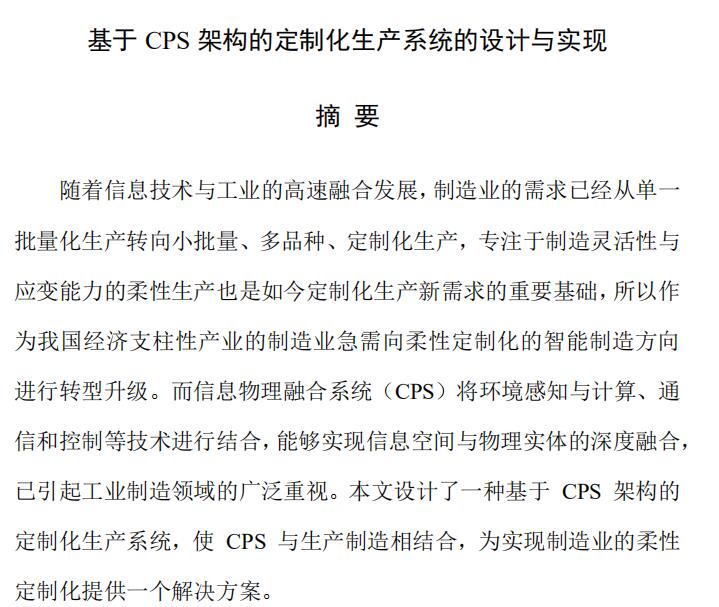 基于CPS架构的定制化生产系统的设计与实现