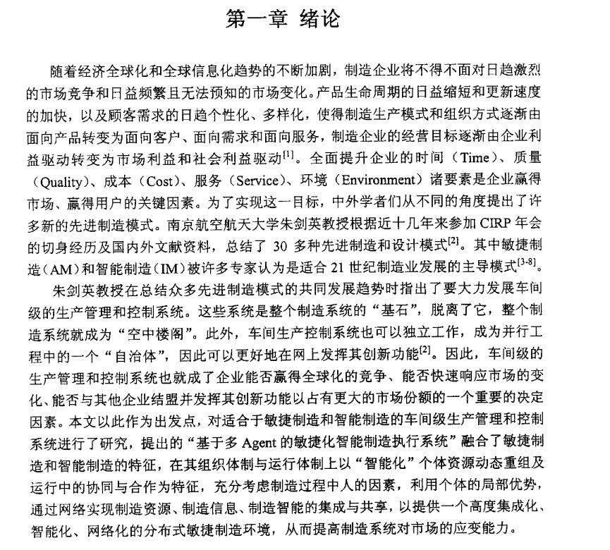 随着经济全球化和全球信息化趋势的不断加剧,制造企业将不得不面对日趋激烈的市场竞争和日益频繁且无法预知的市场变化。产品生命周期的日益缩短和更新速度的加快,以及顾客需求的日趋个性化、多样化,使得制造生产模式和组织方式逐渐由面向产品转变为面向客户、面向需求和面向服务,制造企业的经营目标逐渐由企业利益驱动转变为市场利益和社会利益驱动1。全面提升企业的时间(Time)、质量( Quality)、成本((Cost)、服务(Service)、环境(Environment)诸要素是企业赢得市场、赢得用户的关键因素。为了实现这--目标,中外学者们从不同的角度提出了许多新的先进制造模式。南京航空航天大学朱剑英教授根据近十几年来参加CIRP年会的切身经历及国内外文献资料,总结了30 多种先进制造和设计模式P2。其中敏捷制造(AM)和智能制造(IM)被许多专家认为是适合21世纪制造业发展的主导模式3-8]。