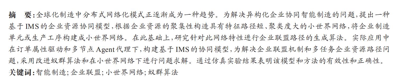 基于 IMS 的企业资源协同模型,根据企业资源的聚集性构造具有特征路径短、聚类度大的小世界网络,将企业制造