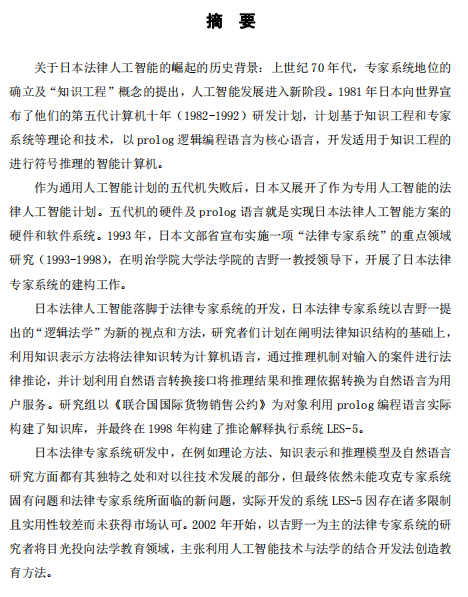 关于日本法律人工智能的崛起的历史背景:上世纪 70 年代,专家系统地位的 确立及“知识工程”概念的提出,人工智能发展进入新阶段。1981 年日本向世界宣 布了他们的第五代计算机十年(1982-1992)研发计划,计划基于知识工程和专家 系统等理论和技术,以 prolog 逻辑编程语言为核心语言,开发适用于知识工程的 进行符号推理的智能计算机。