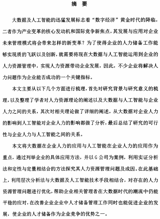 大数据及人工智能的迅猛发展标志着“数字经济”黄金时代的降I临, 二者作为产业变革的核心发动机和国际竞争新焦点,其发展与应用对企业 未来管理模式将会带来怎样的新变革?为了使得企业的人力储备工作能 够实现质的飞跃以及创新,就需要将现在大数据与人工智能运用到企业的 人力资源管理中,实现人力资源带动企业发展,因此,不少企业将解决人 力问题作为企业能否成功的一个关键指标。