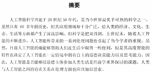 人工智能科学兴起于2()世纪BO年代,是当今世界最炙手可热的科学之‘。 虽然只有60多年的历史,但其应用领域却十分广泛,给人类的经济、文化、生 态、生活等方而都产生了深远影响。但科学是把双刃剑,上世纪未,随着人:r智 能的彳i断进步,人工智能所刊’来的一系列伦理问题也引起了当今学者的重视。虽 然,H前人_r:爷7能的确能够帮助人们在生活中取得一些便利,但是其高度智能的 特性也决定了人工智能在一定情境中拥有白、E的道德决策能力以及思考ijr.;,0。凶 此,人jr智能是否能够以道德}三体参加人类生活是同…I J'J‘!”T7-术界探讨的课题,人类 Ij人工智能之问的存在关系存伦理方面也应该加以思索。