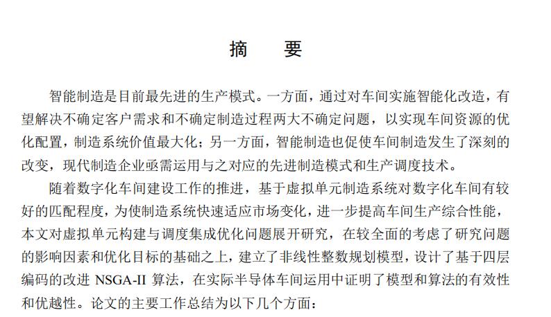 智能制造是目前最先进的生产模式。一方面,通过对车间实施智能化改造,有望解决不确定客户需求和不确定制造过程两大不确定问题,以实现车间资源的优化配置,制造系统价值最大化;另一方面,智能制造也促使车间制造发生了深刻的改变,现代制造企业亟需运用与之对应的先进制造模式和生产调度技术。