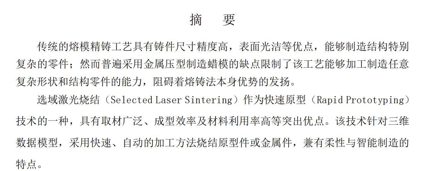 传统的熔模精铸工艺具有铸件尺寸精度高,表面光洁等优点,能够制造结构特别复杂的零件;然而普遍采用金属压型制造蜡模的缺点限制了该工艺能够加工制造任意复杂形状和结构零件的能力,阻碍着熔铸法本身优势的发扬。