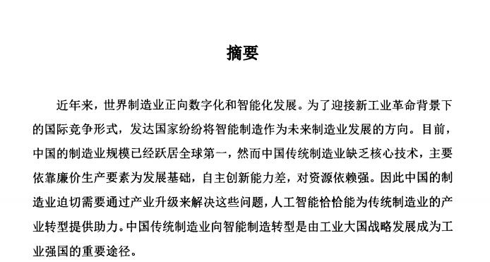 近年来,世界制造业正向数字化和智能化发展。为了迎接新工业革命背景下的国际竞争形式,发达国家纷纷将智能制造作为未来制造业发展的方向。目前,中国的制造业规模已经跃居全球第一,然而中国传统制造业缺乏核心技术,主要依靠廉价生产要素为发展基础,自主创新能力差,对资源依赖强。因此中国的制造业迫切需要通过产业升级来解决这些问题,人工智能恰恰能为传统制造业的产业转型提供助力。中国传统制造业向智能制造转型是由工业大国战略发展成为工业强国的重要途径。