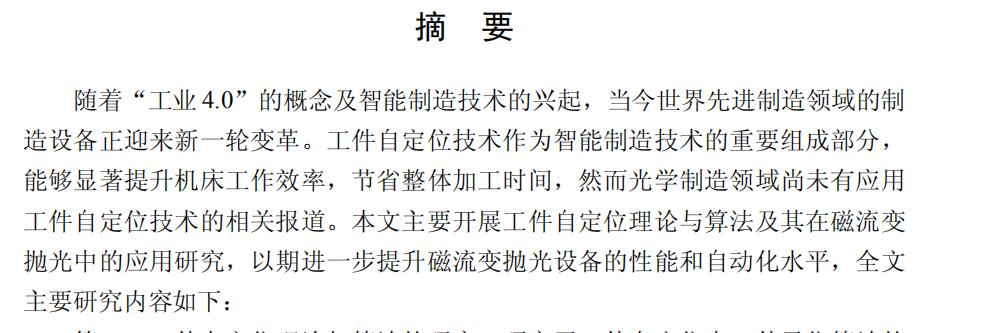 随着“工业 4.0”的概念及智能制造技术的兴起,当今世界先进制造领域的制造设备正迎来新一轮变革。工件自定位技术作为智能制造技术的重要组成部分,能够显著提升机床工作效率,节省整体加工时间,然而光学制造领域尚未有应用工件自定位技术的相关报道。本文主要开展工件自定位理论与算法及其在磁流变抛光中的应用研究,以期进一步提升磁流变抛光设备的性能和自动化水平,全文主要研究内容如下