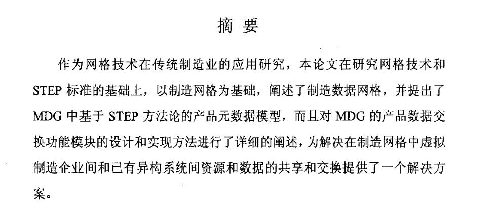 作为网格技术在传统制造业的应用研究,本论文在研究网格技术和STEP标准的基础上,以制造网格为基础,阐述了制造数据网格,并提出了MDG中基于STEP方法论的产品元数据模型,而且对MDG的产品数据交换功能模块的设计和实现方法进行了详细的阐述,为解决在制造网格中虚拟制造企业间和已有异构系统间资源和数据的共享和交换提供了一个解决方案。