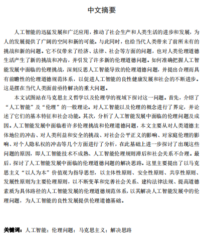 人工智能的迅猛发展和广泛应用,推动了社会生产和人类生活的进步和发展,为 人的发展提供了广阔的空间和新的可能。与此同时,也给当代人类带来了前所未有的 挑战和新的问题。它不仅带来了经济、法律、社会等方面的问题,也对人类伦理道德 生活产生了新的挑战和冲击,并引发了许多新的伦理道德问题。如何准确把握人工智 能发展中面临的伦理挑战,深刻反思人工智能导致的伦理道德问题,并提出合理而具 有前瞻性的伦理道德规范体系,以促进人工智能的良性健康发展和社会的不断进步。 这是摆在当代人类面前亟待解决的重大问题