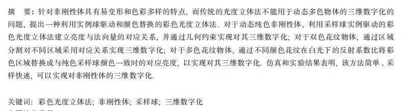 利用改进的彩色光度立体法实现非刚性体三维数字化