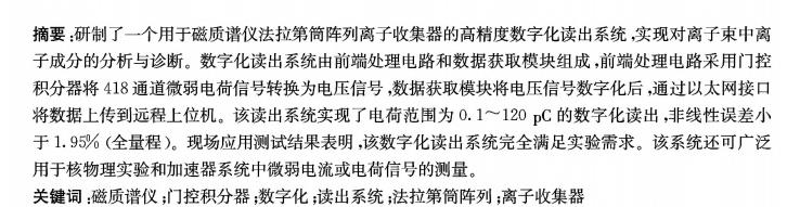 :研制了一个用于磁质谱仪法拉第筒阵列离子收集器的高精度数字化读出系统,实现对离子束中离