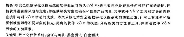 核安全级数字化仪控系统的软件验证与确认(V&V)的主要任务是查找任何可能存在的缺陷,评 估软件潜在的风险与危害,并提供解决方案以确保和提高产品质量,其中软件V&V工具和方法的选择 直接影响到V&V活动的成效。本文从核电站安全级数字化仪控系统的功能出发,针对已有堆型和新 研制堆型两种不同对象的特点,提出其软件V&V的模型,分析相关的方法和工具,并总结软件V&V 活动的关键因素。