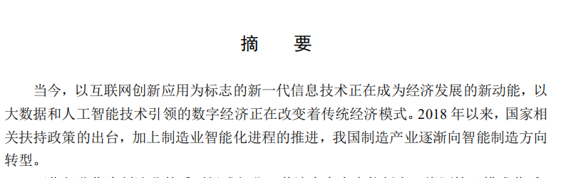 当今,以互联网创新应用为标志的新一代信息技术正在成为经济发展的新动能,以 大数据和人工智能技术引领的数字经济正在改变着传统经济模式。2018 年以来,国家相 关扶持政策的出台,加上制造业智能化进程的推进,我国制造产业逐渐向智能制造方向 转型。