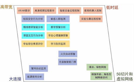 可管、可控并能提供主动智能服务的网络是未来智慧校园发展的基础,5G 的高带宽、低时延、广连 接技术特性与网络切片、边缘计算等技术相结合,有效解决传统数字校园中网络重复部署、数据存储的安全隐 患、无法灵活应对业务需求、校园智慧性不足等问题。基于 5G 构建边-云融合的教育专网,将集中在远端云中心 的服务从“核心”下沉到“边缘”,边缘计算和云计算相互协同既保障学校网络的服务质量和数据存储的安全,还 使学校能灵活应对业务变化,高效利用学校大数据真正实现智慧教育。