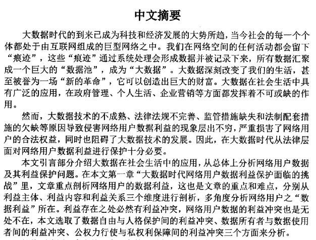 大数据时代的到来己成为科技和经济发展的大势所趋,当今社会的每一个个体都处于由互联网组成的巨型网络之中。我们在网络空间的任何活动都会留下“痕迹”,这些“痕迹”通过系统处理会形成数据并被记录下来,所有数据汇聚成一个巨大的“数据池”,成为“大数据”。大数据深刻改变了我们的生活,甚至被誉为一场“新的革命”,它可以创造出巨大的财富。大数据在社会生活中具有广泛的应用,在政府管理、个人生活、企业营销等方面都发挥着不可或缺的作用。