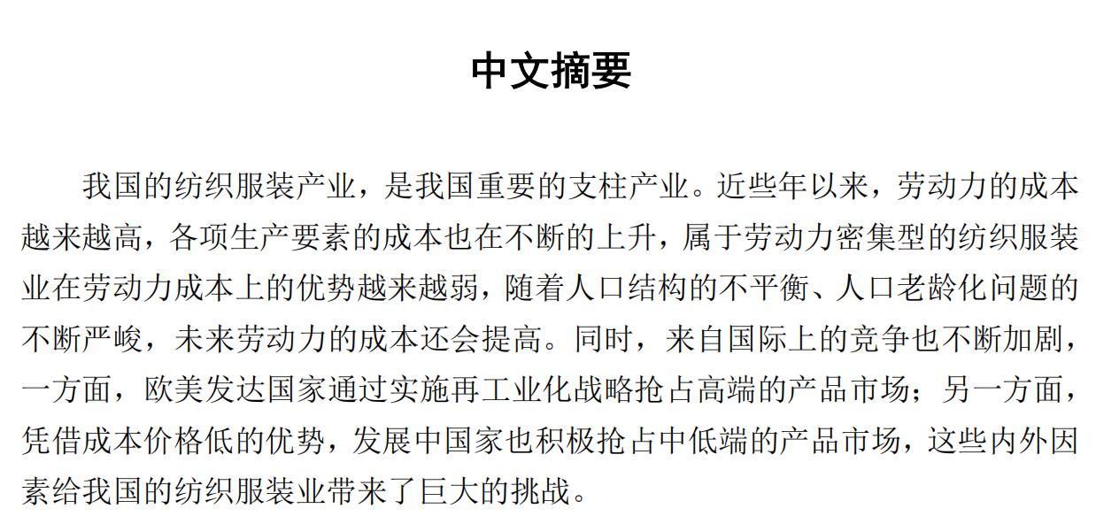 我国的纺织服装产业,是我国重要的支柱产业。近些年以来,劳动力的成本越来越高,各项生产要素的成本也在不断的上升,属于劳动力密集型的纺织服装业在劳动力成本上的优势越来越弱,随着人口结构的不平衡、人口老龄化问题的不断严峻,未来劳动力的成本还会提高。同时,来自国际上的竞争也不断加剧,一方面,欧美发达国家通过实施再工业化战略抢占高端的产品市场;另一方面,凭借成本价格低的优势,发展中国家也积极抢占中低端的产品市场,这些内外因素给我国的纺织服装业带来了巨大的挑战。