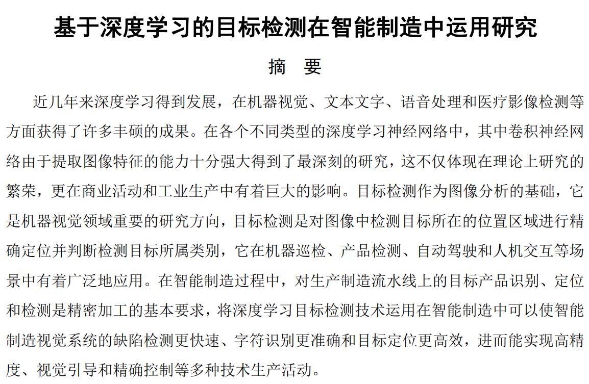 基于深度学习的目标检测在智能制造中运用研究