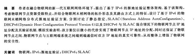 址分配及其验证机制.模拟实验表明,该方案仅以微小的代价实现了物联网节点IP地址的分配,同时还保证了物联
