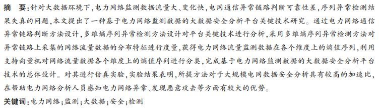 基于电力网络监测数据的大数据安全分析平台关键技术研究