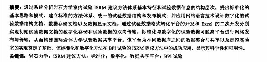 通过系统分析岩石力学室内试验ISRM建议方法体系基本特征和试验数据信息的结构层次,提出标准化的
