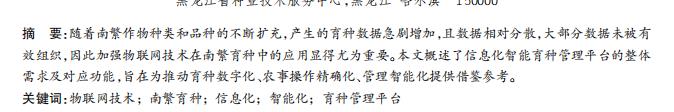 随着南繁作物种类和品种的不断扩充,产生的育种数据急剧增加,且数据相对分散,大部分数据未被有 效组织,因此加强物联网技术在南繁育种中的应用显得尤为重要。本文概述了信息化智能育种管理平台的整体 需求及对应功能,旨在为推动育种数字化、农事操作精确化、管理智能化提供借鉴参考。