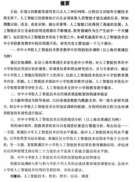 目前,在强大的数据资源背景以及人工神经网络、自然语言识别等关键技术 的支持下,人工智能已经能够执行以往必须依靠人类智能才能完成的任务,例如 图像识别、语言、语音识别、做出决策等,人工智能已经得到了高速的发展。人 工智能在各行各业的应用进程都在不断推进,教育领域作为生产生活中一个关键 部门,也在因为人工智能技术而处于转型之中