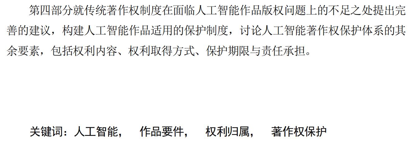 第四部分就传统著作权制度在面临人工智能作品版权问题上的不足之处提出完