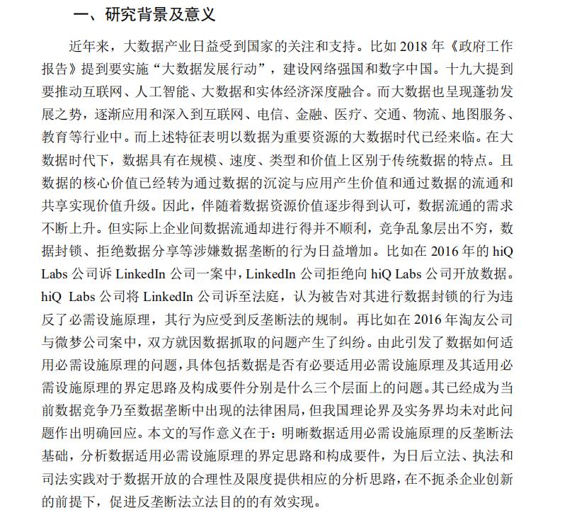 大数据时代数据适用必需设施原理的反垄断法分析