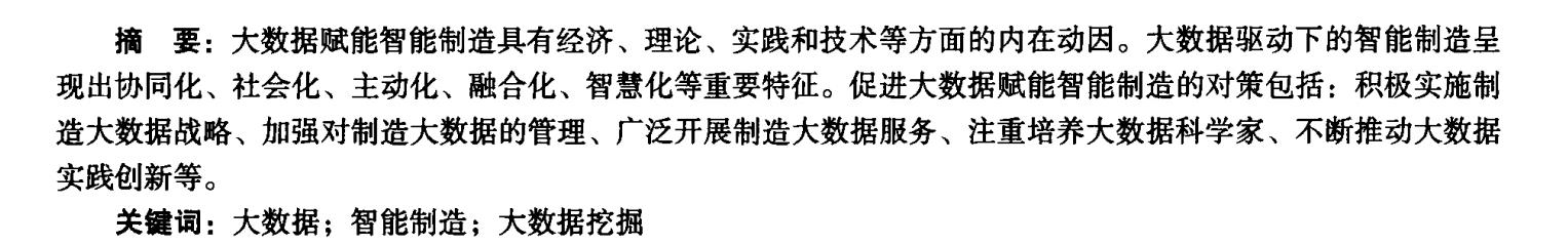 数据赋能智能制造具有经济、理论、实践和技术等方面的内在动因。大数据驱动下的智能制造呈 现出协同化、社会化、主动化、融合化、智慧化等重要特征。促进大数据赋能智能制造的对策包括:积极实施制 造大数据战略、加强对制造大数据的管理、广泛开展制造大数据服务、注重培养大数据科学家、不断推动大数据 实践创新等。