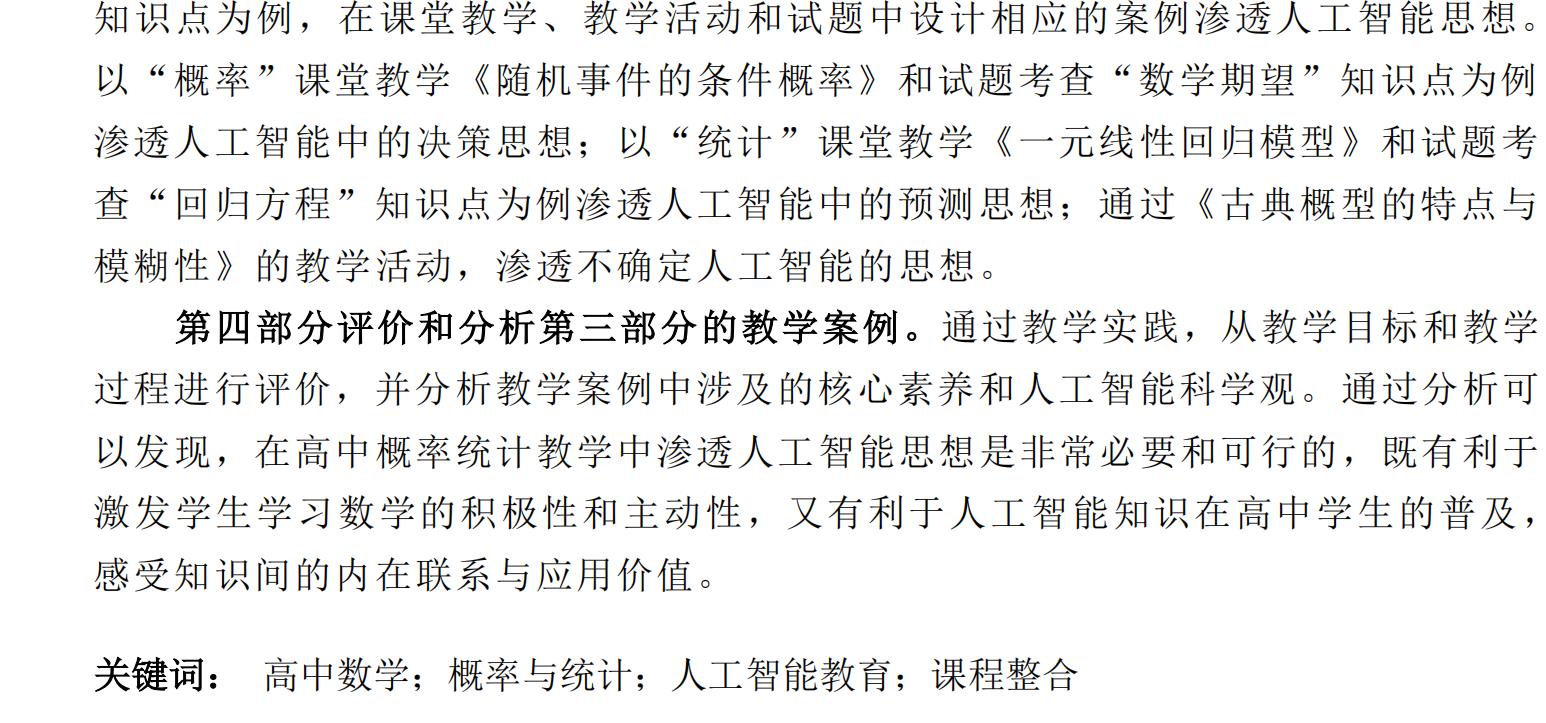 评价与分析,说明高中概率统计教学中渗透人工智能教育的必要性和可行性。具体