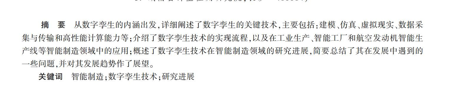从数字孪生的内涵出发,详细阐述了数字孪生的关键技术,主要包括:建模、仿真、虚拟现实、数据采 集与传输和高性能计算能力等;介绍了数字孪生技术的实现流程,以及在工业生产、智能工厂和航空发动机智能生 产线等智能制造领域中的应用;概述了数字孪生技术在智能制造领域的研究进展,简要总结了其在发展中遇到的 一些问题,并对其发展趋势作了展望。