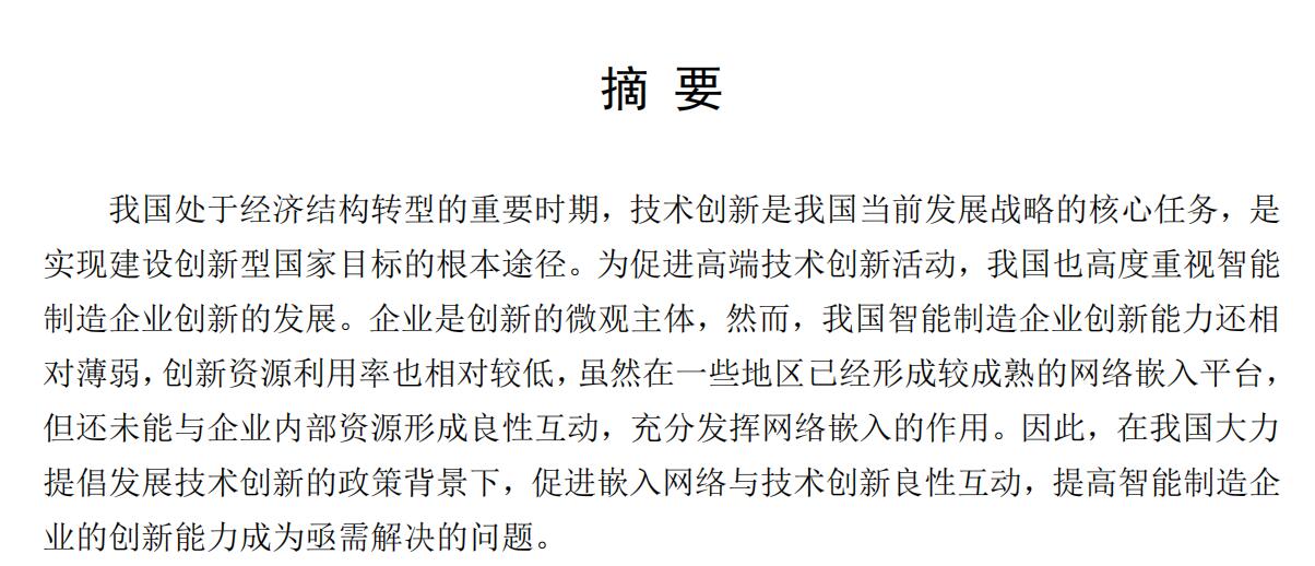 我国处于经济结构转型的重要时期,技术创新是我国当前发展战略的核心任务,是实现建设创新型国家目标的根本途径。为促进高端技术创新活动,我国也高度重视智能制造企业创新的发展。企业是创新的微观主体,然而,我国智能制造企业创新能力还相对薄弱,创新资源利用率也相对较低,虽然在一些地区已经形成较成熟的网络嵌入平台,但还未能与企业内部资源形成良性互动,充分发挥网络嵌入的作用。因此,在我国大力提倡发展技术创新的政策背景下,促进嵌入网络与技术创新良性互动,提高智能制造企业的创新能力成为亟需解决的问题。