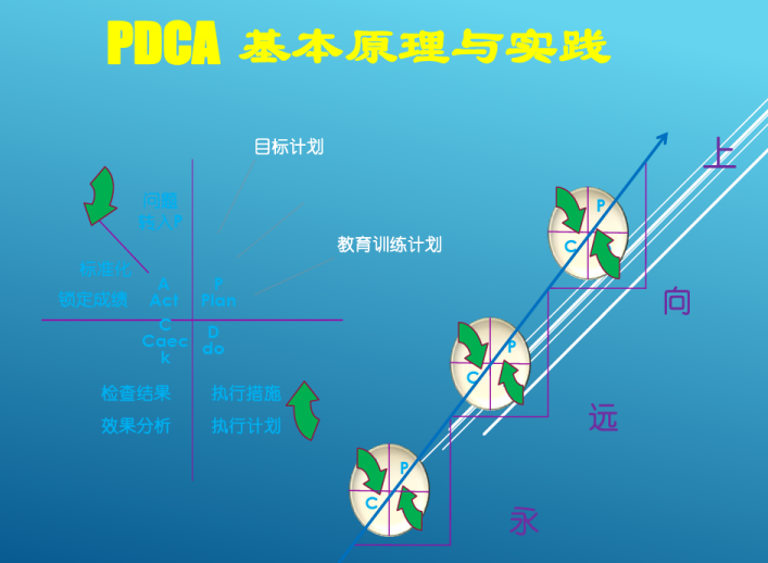 所谓管理,是指利用拥有的资源,建立过程控制,完成增加价值的转换(或称产生新的价值)过程。管理是由维持及改善这两个轮子构成。维持是保持现有水平改善是打破现状,建立新的方式、方法、从而获得更大的增值。所谓管理者,不仅仅是指在公司组织体系中经理、主管等具有中高等职务的人员,也包括在工作单位中能管理数人,能指挥数人,能教育数人的最基层的班组长。管理者职责:辅佐.上级;激励与培育部属;确保组织目标的完成;解决问题创造竞争优势。任何一个管理活动必须经历一个PDCA循环才能称为4个管理控制过程暂时性完成!