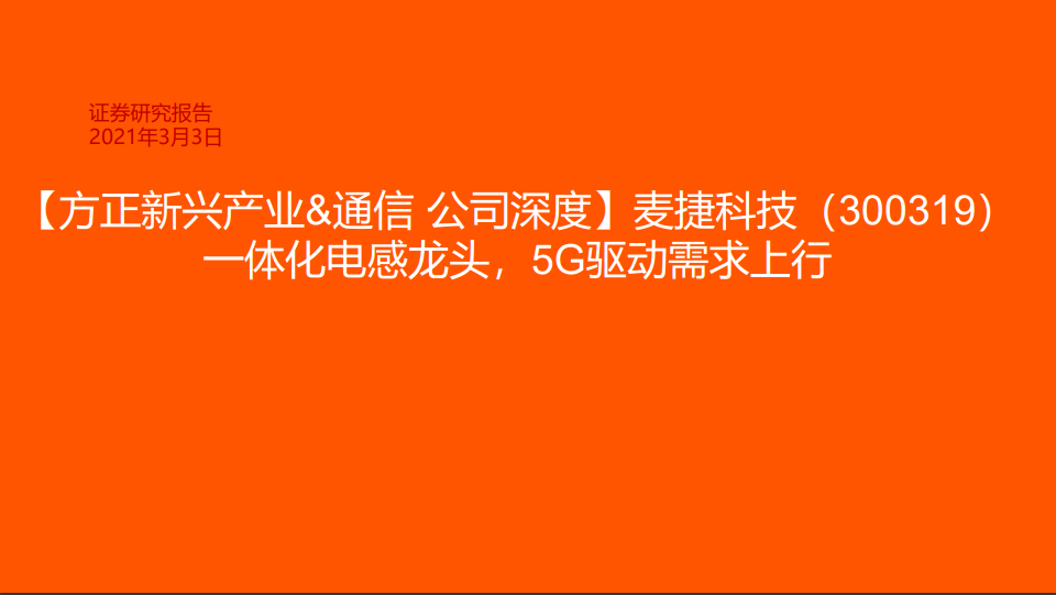 公司研究麦捷科技-公司一体化深度电感龙头5G驱动需求上行