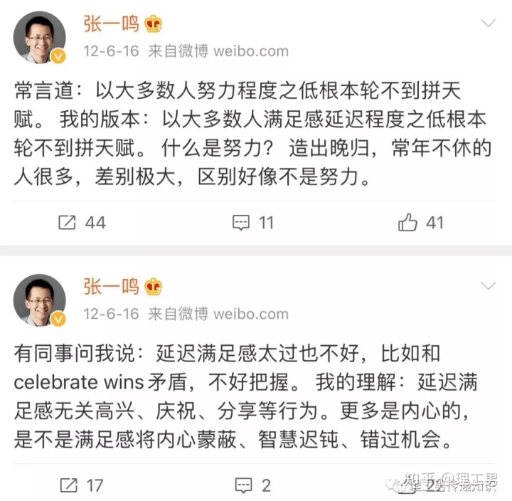 这几天抽空把张一鸣的所有微博看了一遍,发现 2010 年的 微博最好,就是他 30 岁左右的时候,那时候刚创业没多久, 在微博上认真分享自己的思考和观点。 到了 2012 年附近,开始做今日头条,每天都是大量转发今 日头条上的文章到微博,干货变少了。后面就更新得越来越 少。 我从他的微博中,试图找到他成功的钥匙,得到了一些只言 片语 , 但是仅仅是这些只言片语 , 我都觉得对我的启发很大。