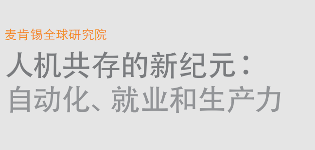 机器人技术、人工智能 (AI) 与机器学习的发展开启 了自动化的新纪元,机器在越来越多的工作上的表 现已经与人类旗鼓相当,甚至超越了人类。就算是一 些需要认知能力的工作,机器也能胜任。本摘要精 选了麦肯锡对未来工作的研究,分析了全球经济的 自动化潜力,以及自动化在工作场所应用速度的影 响因素,也探讨了自动化对经济的可能冲击。