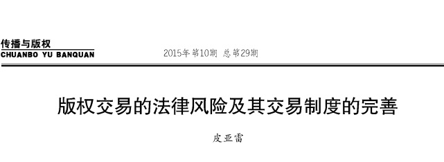 版权交易的法律风险及其交易制度的完善_皮亚雷
