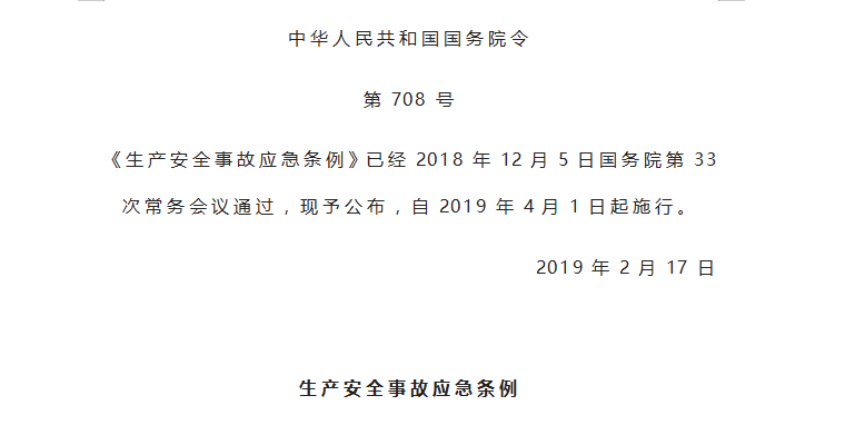 《生产安全事故应急条例》4月1日起施行
